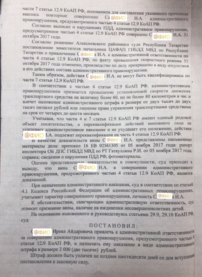 Превышение скорости на 60 км/ч (ч.4 ст.12.9 КоАП РФ)